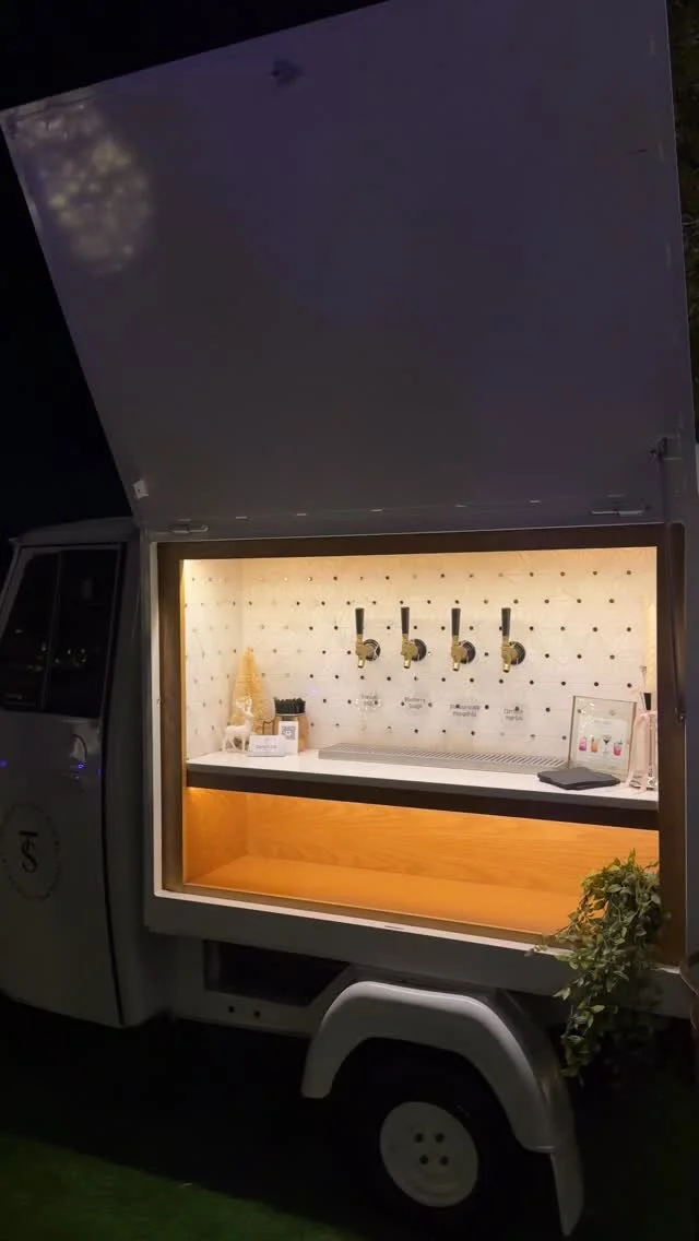 Elevate your wedding, private party, or corporate event with our custom-built Piaggio Ape mobile bar — featuring a 4-tap, self-serve system that pours beer, wine, cocktails, mocktails, and more.